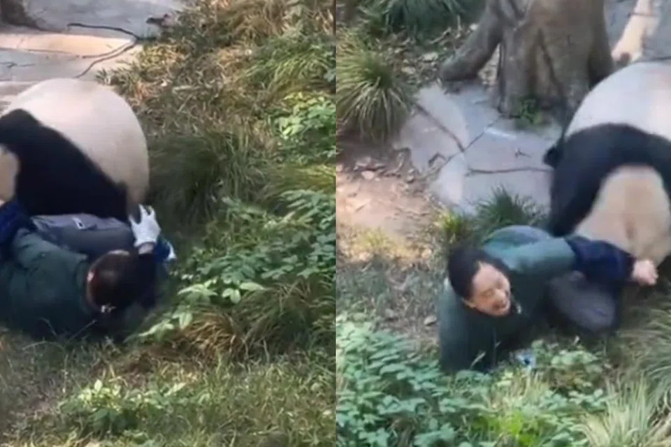 விரைந்து அங்கிருந்து நகர்ந்துசென்ற பராமரிப்பாளர் மீண்டும் அணுகியபோது சினமுற்ற ‘பாண்டா’ அவரைக் கீழே தள்ளித் தாக்கியது.
