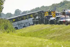 நயாகரா நீர்வீழ்ச்சியிலிருந்து நியூயார்க் நகரை நோக்கிச் சென்று கொண்டிருந்தபோது பஃப்ளோ பகுதிக்கு வெளியே நெடுஞ்சாலையிலிருந்து விலகிய பேருந்து பக்கவாட்டில் உள்ள பள்ளத்தை நோக்கிப் பாய்ந்தது.