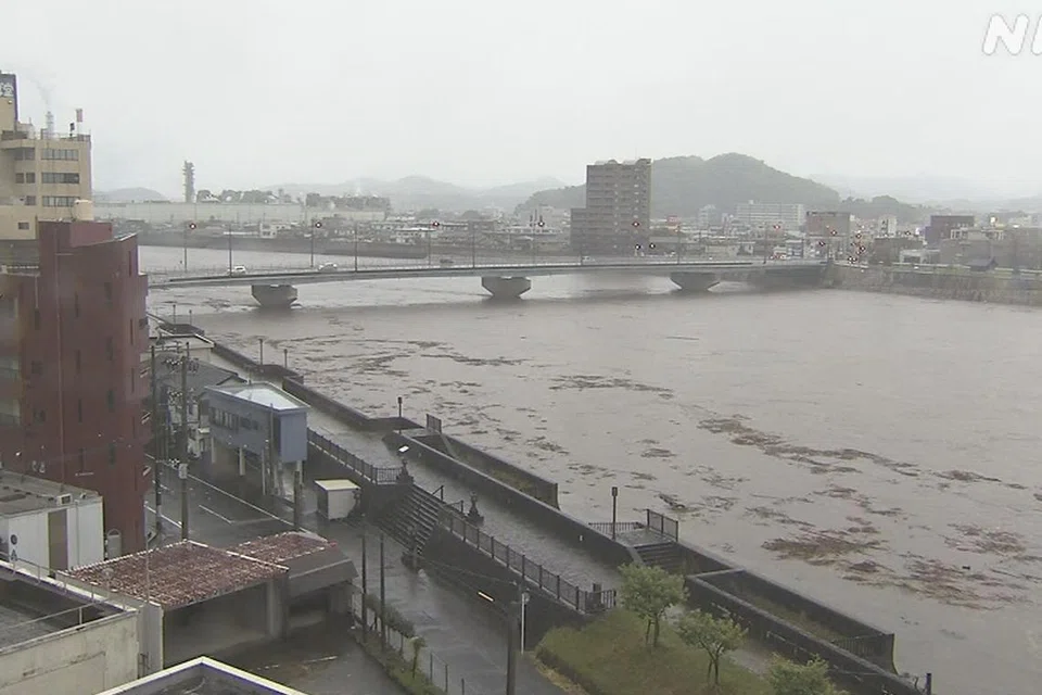 ககோஷிமா வட்டாரத்தில் ஆற்றிலிருந்து கரைபுரண்ட நீர் வீடுகளுக்குள் புகுந்தது தொலைக்காட்சியில் ஒளிபரப்பான காணொளிகளில் தெரிந்தது.