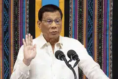 தி ஹேக்கில் உள்ள அனைத்துலக நீதிமன்றத்தில் திரு டுட்டர்டே குற்றச்சாட்டுகளை எதிர்நோக்குகிறார்.