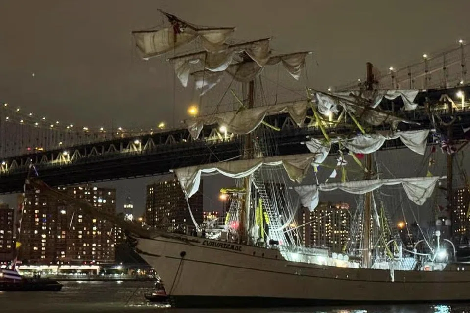நியூ யார்க்: மெக்சிகோவைச் சேர்ந்த கடற்படைக் கப்பல் ஒன்று, புரூக்ளின் பாலத்தின்மீது மோதியதில் அதன் கொடிக்கம்பங்களின் நுனிப்பகுதி சேதமடைந்துள்ளது.