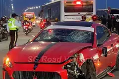 சட்டவிரோதமாக ஜோகூர் பாரு சாலை ஓரத்தில் நிறுத்திவைக்கப்பட்ட சிங்கப்பூர் காரை, எங்கிருந்தோ வந்த மற்றொரு கார் சாலைத் தடுப்பை திடீர் என மீறி மோதியது.