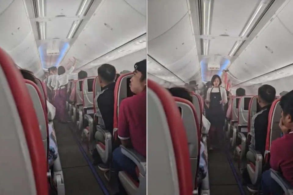 காணொளியில் மூன்று விமானச் சிப்பந்திகள் எங்கு தீ ஏற்பட்டது என்பதை அறியப் பெட்டிகள் இருக்கும் இடத்தில் வேகமாகச் சோதனையிட்டதைப் பார்க்க முடிந்தது.