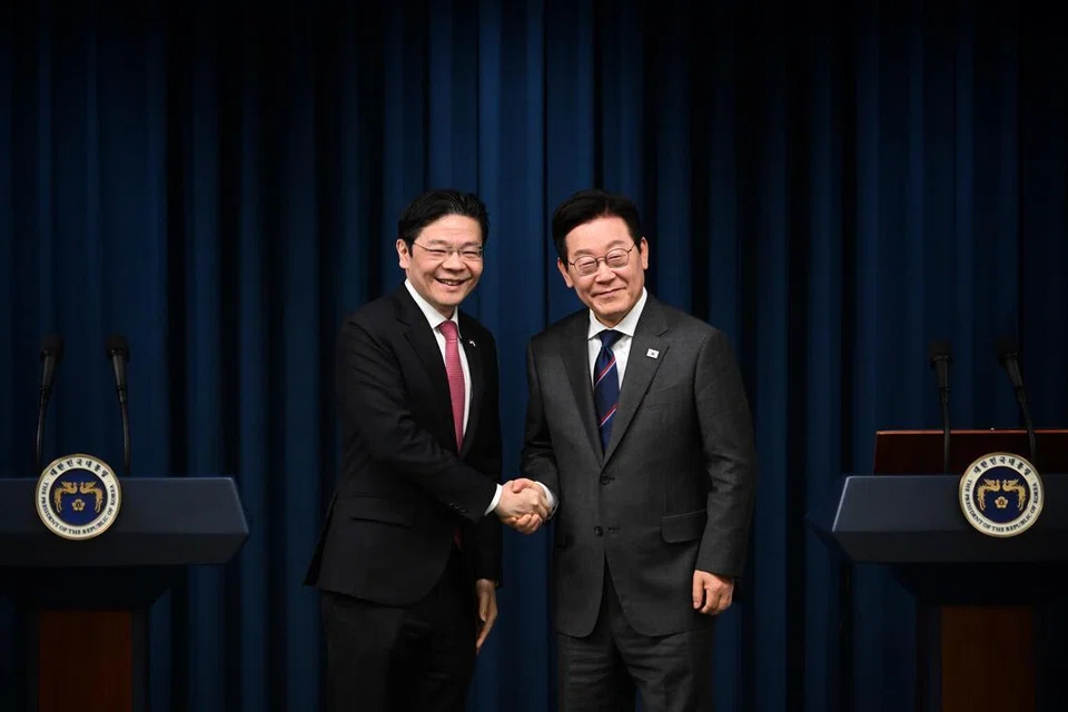 2025ஆம் ஆண்டு நவம்பர் மாதம் ஆசிய பசிஃபிக் பொருளியல் ஒத்துழைப்பு (ஏபெக்) மாநாட்டில் கலந்துகொள்ளத் தென்கொரிய நகரான கியோங்ஜுவுக்குப் பிரதமர் லாரன்ஸ் சென்றிருந்தார். அதற்கு முன்பாக இருநாடுகளுக்கும் இடையே இருந்துவரும் அரசதந்திர உறவின் 50ஆம் ஆண்டு நிறைவை முன்னிட்டு, அவர் அதிகாரபூர்வமாகத் தென்கொரிய அதிபருடன் தனிப்பட்ட சந்திப்பை நடத்தினார்.