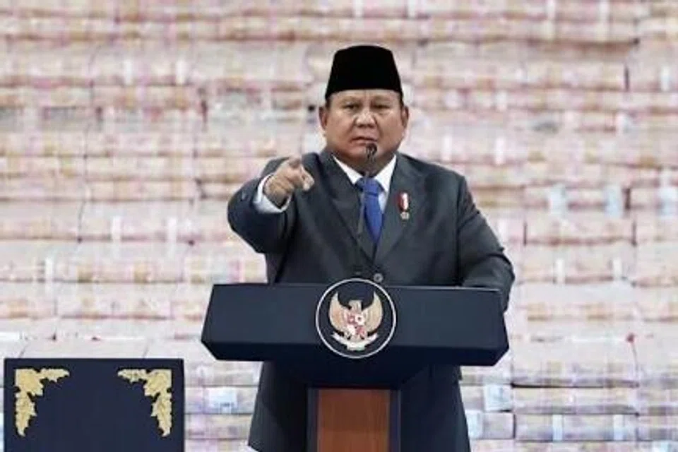 ஜகார்த்தாவிலுள்ள இந்தோனீசியத் தலைமைச் சட்ட அதிகாரி அலுவலகத்தில் நடைபெற்ற நிகழ்வு ஒன்றில் உரையாற்றிய அதிபர் பிரபோவோ சுபியாந்தோ. - படம்: ராய்ட்டர்ஸ்