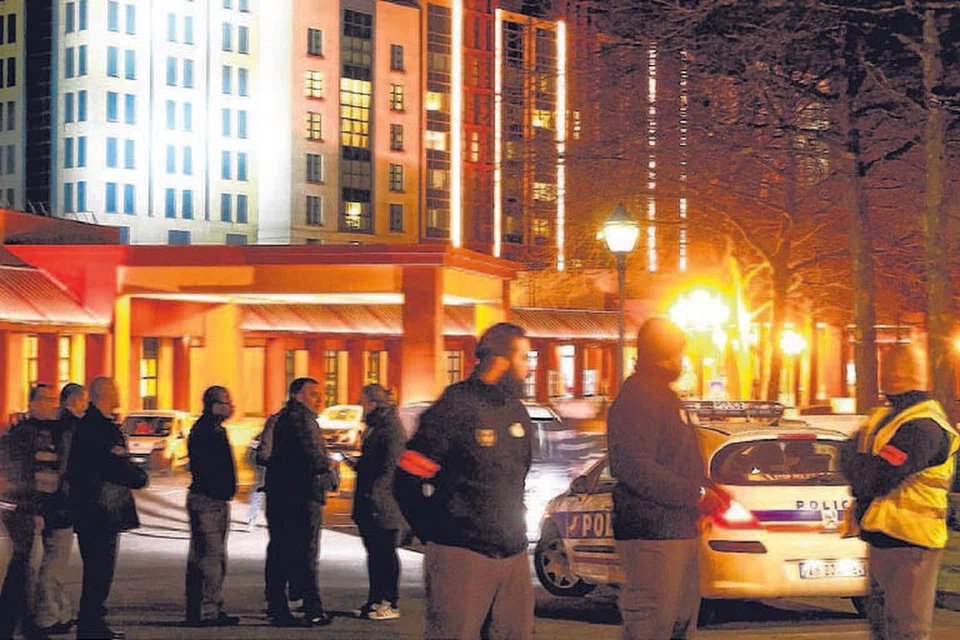 டிஸ்னிலேண்ட் பகுதியில் நியூயார்க் ஹோட்டலுக்கு அருகே பிரெஞ்சு போலிசார் குவிந்துள்ளனர். கைது செய்யப்பட்டுள்ள அந்த ஆடவர், அவரது பாதுகாப்புக்காக அந்த துப்பாக்கிகளை எடுத்து வந்ததாகக் கூறியதாக போலிசார் தெரிவித்துள்ளனர். படம்: ராய்ட்டர்ஸ்