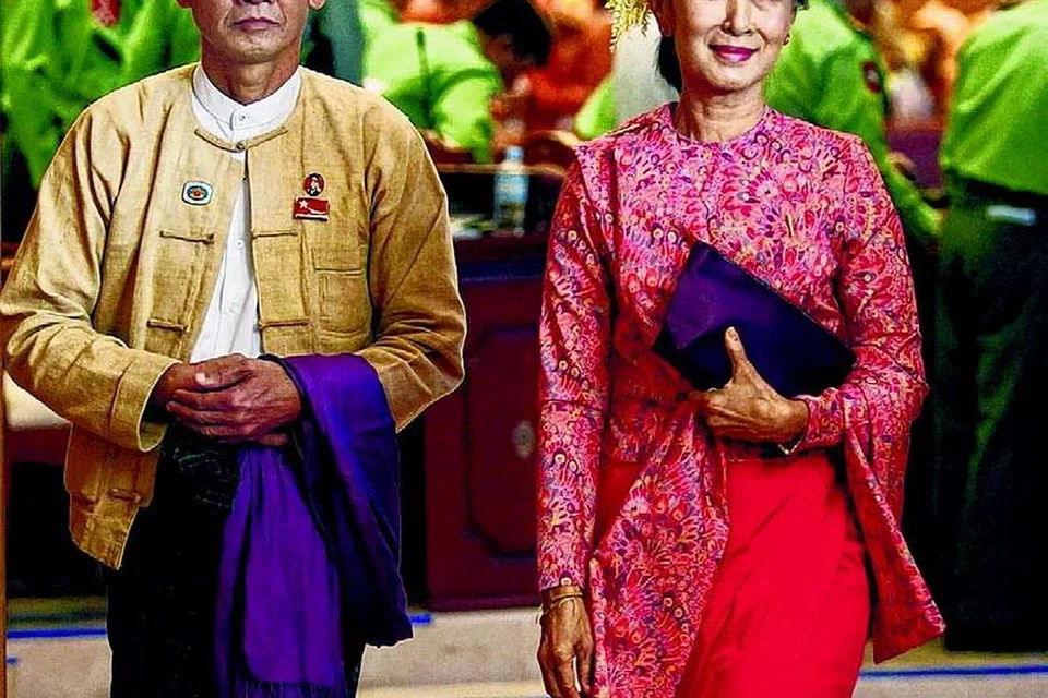 தேசிய ஜனநாயக லீக் கட்சியின் தலைவி ஆங் சான் சூச்சி, புதிய நாடாளுமன்ற திறப்பு விழாவுக்கு வருகிறார். படம்: ராய்ட்டர்ஸ்