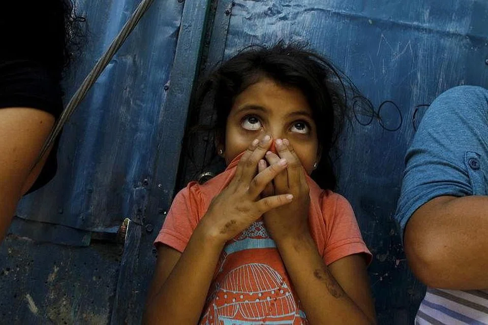 கோஸ்டா ரிக்காவில் பூச்சி மருந்து நெடி தாங்கமுடியாமல் மூக்கைப் பொத்திக்கொள்ளும் சிறுவன். படம்: ராய்ட்டர்ஸ்