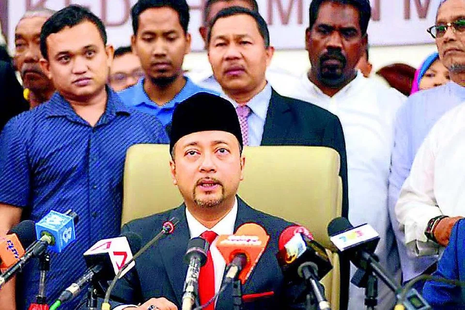 முக்ரிஸ் மகாதீர் தமது பதவி விலகலை அறிவிக்கும் செய்தியாளர் கூட்டம். படம்: இணையம்