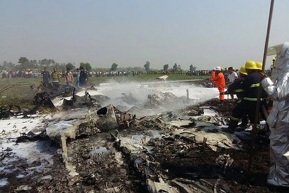 மியன்மாரில் விபத்துக்குள்ளான ராணுவ விமானத்தின் சிதைவுகளை அதிகாரிகள் பார்வையிடுகின்றனர். இந்த விபத்தில் நால்வர் கொல்லப்பட்டதாகவும் ஒருவர் உயிர் தப்பியதாகவும் கூறப்படுகிறது. விபத்து குறித்து விசாரணை மேற்கொள்ளப்பட்டுள்ளது. படம்: ஏஎஃப்பி