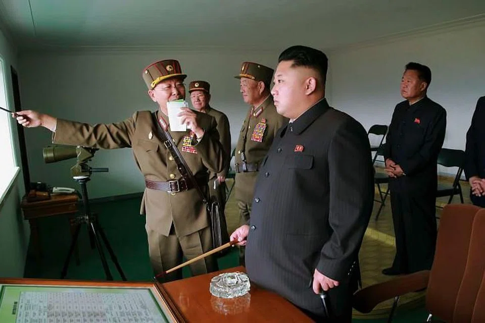 ராணுவ அணிவகுப்பைப் பார்வையிடும் வடகொரியத் தலைவர் கிம் ஜாங் உன். கோப்புப் படம்: ராய்ட்டர்
