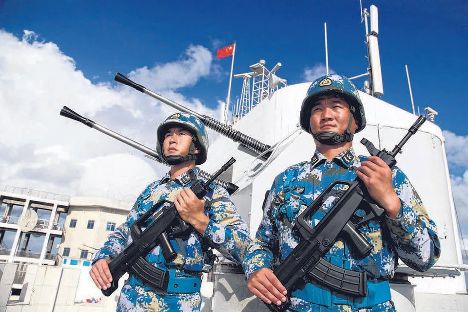 ஸ்பிராட்லி தீவுகளில் சீன ராணுவத்தின் கடற்படை வீரர்கள் கண்காணிப்புப் பணியில் ஈடுபட்டுள்ளனர். படம்: ராய்ட்டர்ஸ்