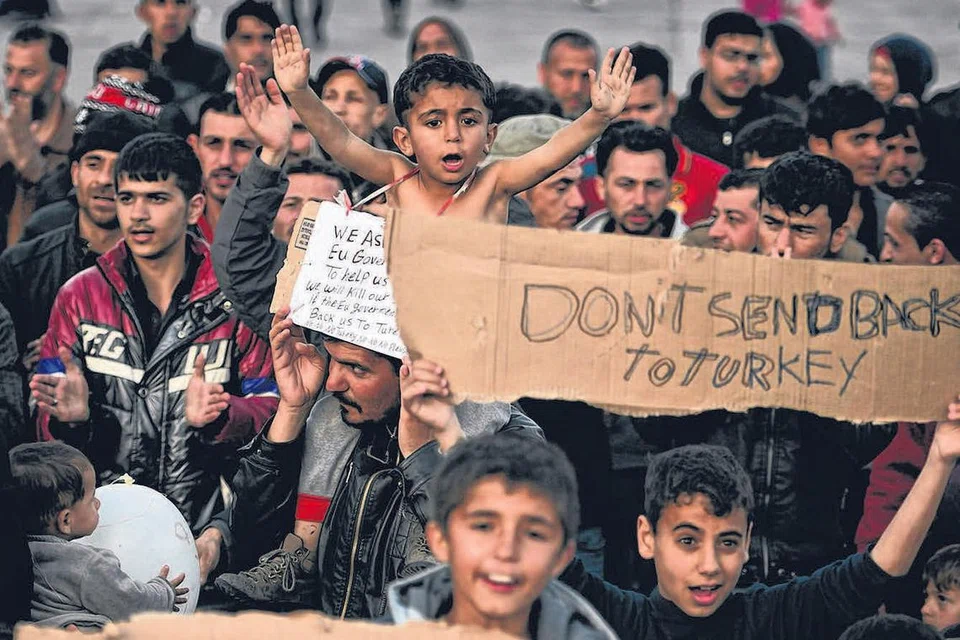 கிரீஸ் தீவுப் பகுதியில் தற்காலிக முகாம்களில் தங்கியுள்ள குடியேறிகளும் அகதிகளும் தங்களை துருக்கிக்கு திருப்பி அனுப்ப வேண்டாம் என்று கூக்குரல் எழுப்புகின்றனர். ஐரோப்பிய நாடுகளை நாடிச் செல்லும் அகதிகள் மற்றும் குடியேறிகளின் எண்ணிக்கை தொடர்ந்து அதிகரித்து வருகிறது. படம்: ஏஎஃப்பி