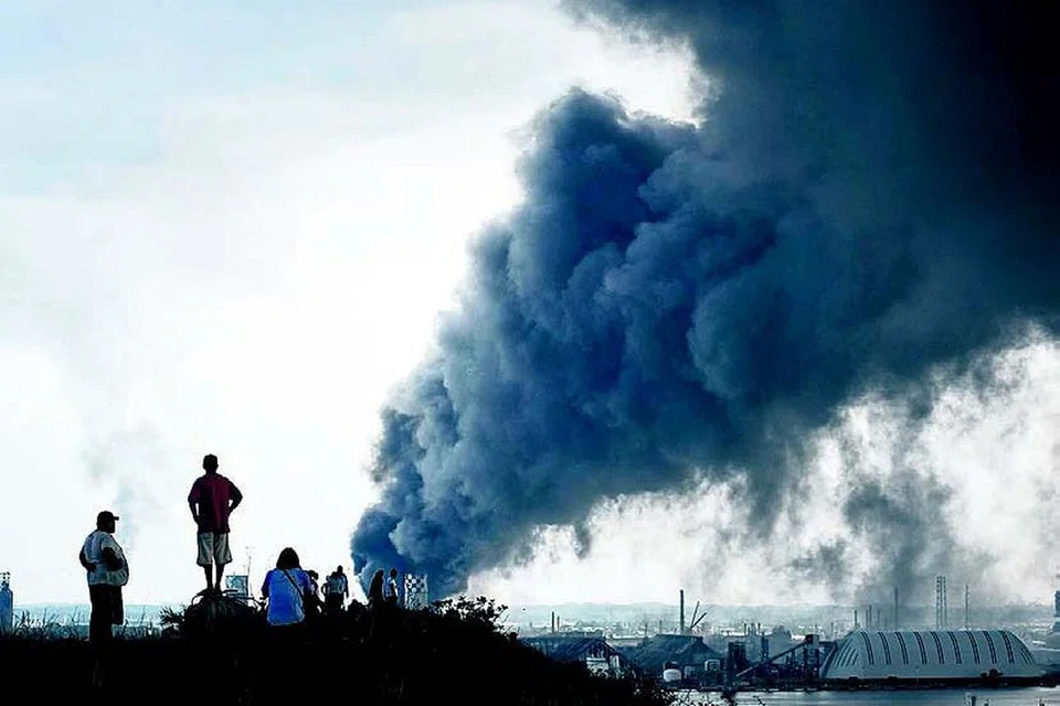 மெக்சிகோ எண்ணெய் சுத்திகரிப்பு ஆலையிலிருந்து தீப்புகை வெளியாவதை குடியிருப்பாளர்கள் பார்த்து பிரமிக்கின்றனர். படம்: ராய்ட்டர்ஸ்