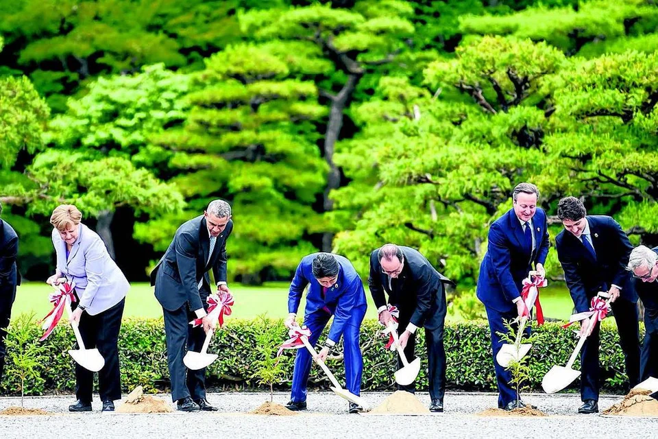 சீனாவின் சர்ச்சைக்குரிய கடல்துறை சம்பந்தப்பட்ட கோரிக்கை குறித்து ஜி=7 நாடு களின் தலைவர்கள் தெளிவான, கடுமையான நிலையை அவசியம் எடுக்க வேண்டும் என்று ஐரோப்பிய மன்றத்தின் தலைவர் டோனல்ட் டஸ்க் கேட்டுக் கொண்டுள்ளார். இந்த மாநாட்டில் ஜப்பானின் தரமான உள்ளமைப்பு வசதி முதலீடு குறித்து திரு அபே, ஜி=7 நாடுகளின் தலைவர்களுக்கு எடுத்துரைக்கவுள்ளார். திரு அபே பிரதமாரகப் பொறுப்பேற்றது முதல் பல நாடுகளுக்கு சுற்றுப்பயணம் சென்றுள்ளார். அந்தப் பயணத்தின் போது ஜப்பானின் உள்ளமைப்பு வசதி தொழில்நுட்பத்தை அவர் பிரபலப்படுத்தி வந்துள்ளார். இத்தாலி, ஜெர்மனி. அமெரிக்கா, ஜப்பான், பிரான்ஸ், பிரிட்டன், கனடா ஆகிய நாடுகளின் தலைவர்கள் மரம் நடும் நிகழ்ச்சியில் கலந்துகொண்டு மரக் கன்றுகளை நடுகின்றனர். ஜப்பான் நாட்டின் தலைநகர் தோக்கியோவில் ஜி=7 மாநாடு தொடங்குவதற்கு முன்பு உலகத் தலைவர்களை ஜப்பானியப் பிரதமர் ஷின்சோ அபே ஜின்டோ புனித வழிபாட்டுத்தலத்திற்கு அழைத்துச் சென்றார். அவர்கள் அங்கு மரம் நடும் நிகழ்ச்சியில் கலந்துகொண்டனர். படம்: ஏஎஃப்பி