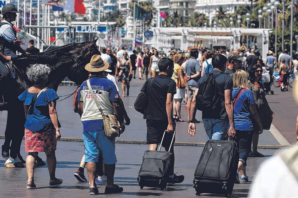 நீஸ் நகரில் தாக்குதல் நடந்த இடத்திற்கு அருகே சுற்றுலாப் பயணிகள் நடந்து செல்லும் வேளையில் பிரெஞ்சு போலிசார் பாதுகாப்புப் பணியில் ஈடுபட்டுள்ளனர். படம்: ராய்ட்டர்ஸ்