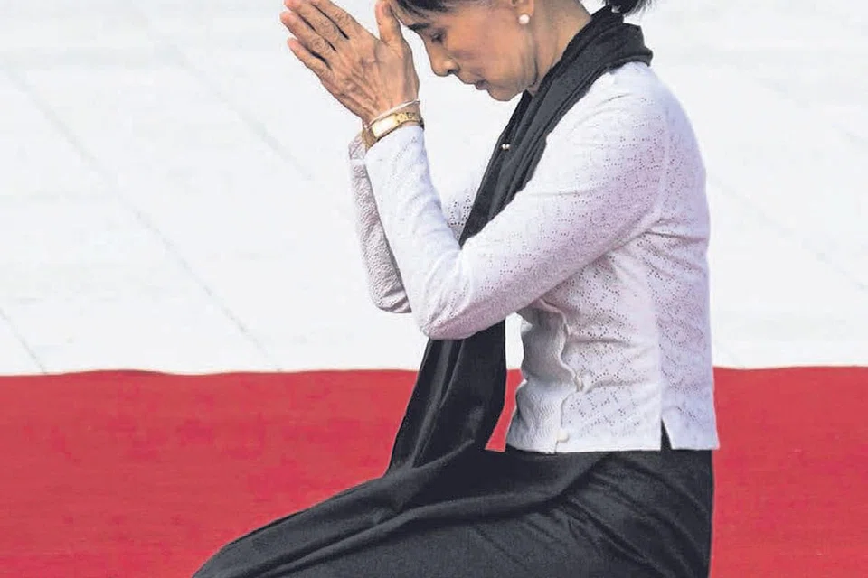 தமது தந்தையின் சமாதிக்கு மரியாதை செலுத்தும் திருவாட்டி சூச்சி. படம்: ஏஎஃப்பி