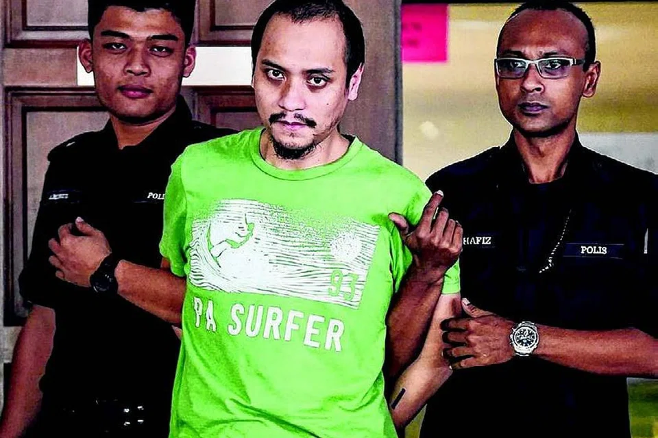 இருவரும் 14 ஆண்டுகள் சிறைத்தண்டனையை எதிர்நோக்குகின்றனர். குறைந்தபட்சம் ஆறு பிரம்படிகளும் அவர்களுக்கு விதிக்கப்படலாம். இருவரையும் வழக்கறிஞர்கள் யாரும் பிரதி நிதிக்கவில்லை. கைது செய்யப்பட்ட ஆறு பேரில் ஒருவரான ஃபசார் நோர் ரெடுவானை போலிசார் அழைத்துச் செல்கின்றனர். படம்: ஏஎஃப்பி