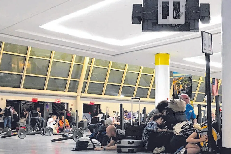 நியூயார்க் விமான நிலையத்தில் நேற்று முன்தினம் துப்பாக்கிச்சூடு நடந்ததாகப் பரவிய தகவலால் அங்கு எட்டாம் எண் முனையத்தில் இருந்த பயணிகள் பீதியில் தரையில் சாய்கின்றனர். இதைத் தொடர்ந்து விமான நிலையத்திலுள்ள இரண்டு முனையங்களிலிருந்து பயணிகள் அப்புறப்படுத்தப்பட்டனர். படம்: ஏஎஃப்பி