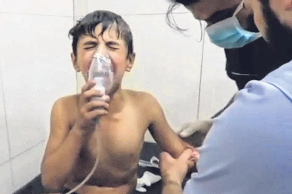 அரசாங்கப் படையினர் நடத்தியதாகக் கூறப்படும் குளோரின் வாயு தாக்குதலில் காயமடைந்தவர்களில் இந்தச் சிறுவனும் ஒருவன். படம்: ராய்ட்டர்ஸ்
