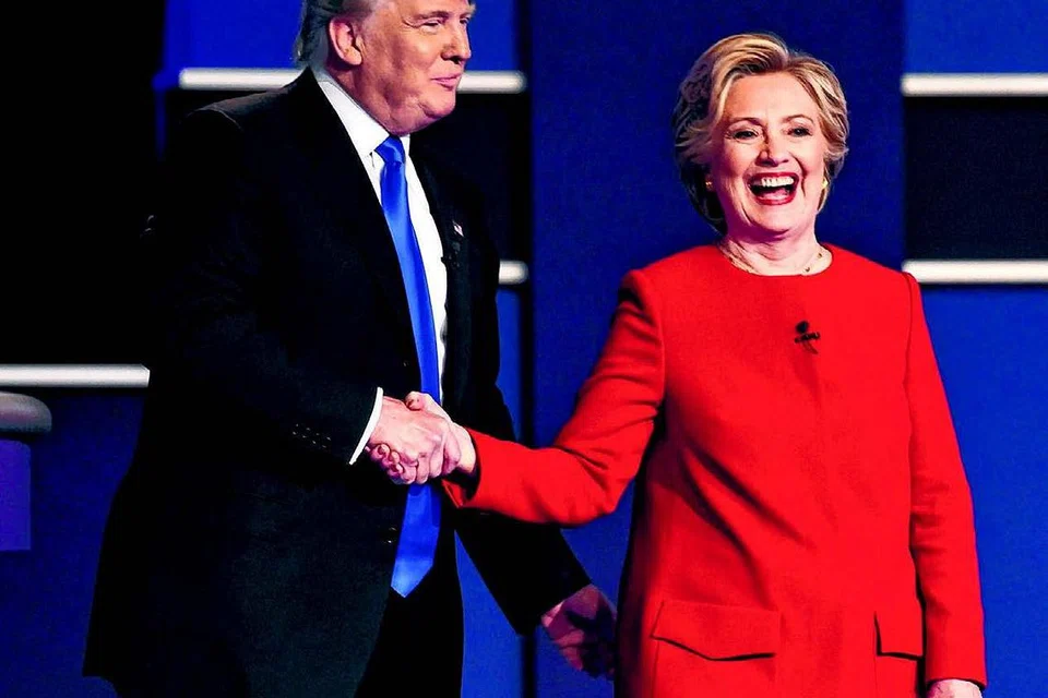 விவாதத்திற்குப் பிறகு ஹில்லரியும் டிரம்பும் கை குலுக்கிக்கொண்டனர். படம்: ஏஎஃப்பி