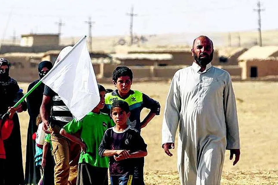 மோசுல் நகரிலிருந்து 30 கி.மீ. தொலைவில் அமைந்துள்ள பஜ்வானியா கிராமத்தை ஐஎஸ் பிடியிலிருந்து ஈராக் ராணுவத்தினர் விடுவித்ததையடுத்து அங்கிருந்து வெளியேறும் மக்கள். படம்: ஏஎஃப்பி
