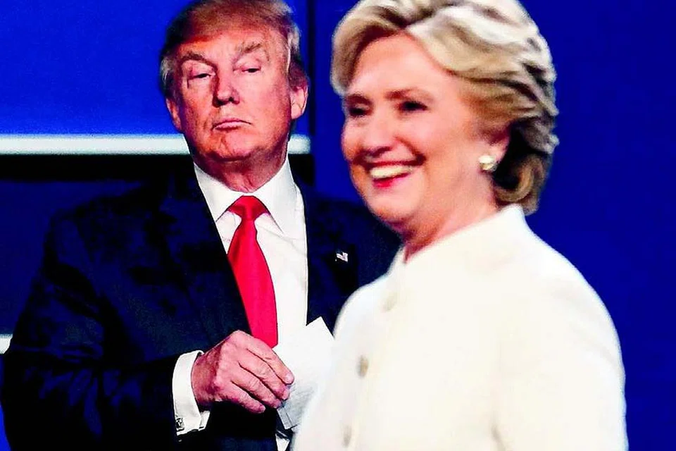 லாஸ் வேகசில் நடந்த இறுதிச் சுற்று விவாதத்தில் பங்கேற்ற ஹில்லரியும் டிரம்பும். படம்: ஏஎஃப்பி