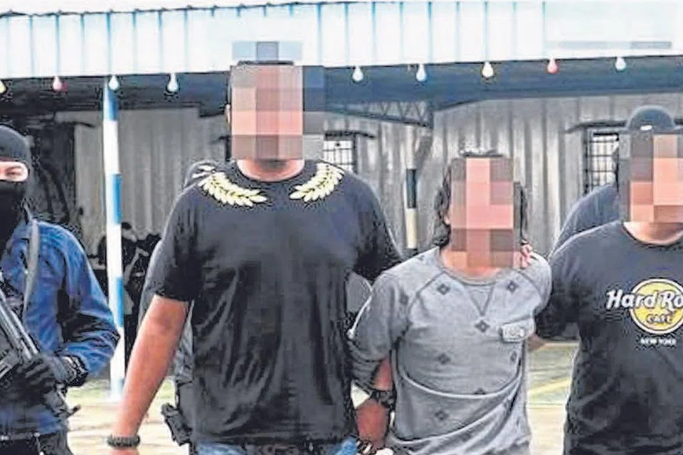 துருக்கியில் இருந்து திருப்பி அனுப்பப்பட்ட மலேசியாவைச் சேர்ந்த இரண்டு ஐஎஸ் போராளிகளை (இருவரில் ஒருவர் வலமிருந்து இரண்டாவது) மலேசிய போலிசார் அழைத்துச் சென்று விசாரணை மேற்கொண்டுள்ளனர். படம்: தி ஸ்டார்