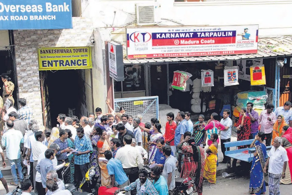 ரூபாய் நோட்டுகளை மாற்ற காத்துக்கிடக்கும் மக்கள்
