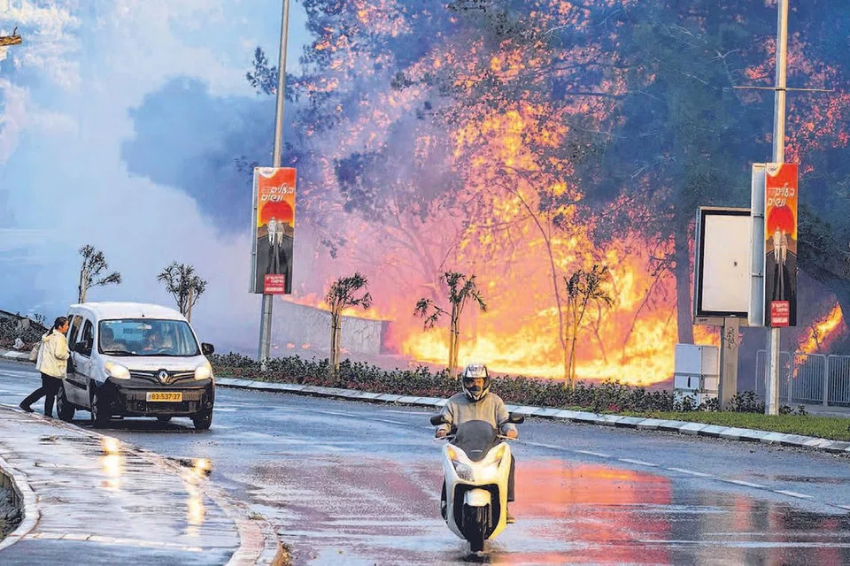 இஸ்ரேலில் ஹைஃபா பகுதியில் காட்டுத் தீ கொழுந்துவிட்டு எரிவதால் அப்பகுதியிலிருந்து மக்கள் வெளியேற்றப்பட்டுள்ளனர். படம்: ஏஎஃப்பி