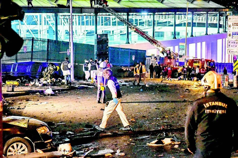 துருக்கியின் இஸ்தான்புல் நகரில் காற்பந்துத் திடலுக்கு அருகே இரு குண்டுகள் வெடித்ததில் 38 பேர் உயிரிழந்தனர்; 155 பேர் காயம் அடைந்தனர். குண்டு வெடிப்புகளில் உயிரிழந்தவர்களில் பெரும்பாலானோர் போலிஸ் அதிகாரிகள் என்று கூறப்படுகிறது. காற்பந்து திடலுக்கு அருகே கார் குண்டு வெடித்த இடத்தில் தடயவியல் அதிகாரிகள் சோதனையில் ஈடுபட்டுள்ளனர். அத்தாக்குதல்களுக்கு இதுவரை எந்த போராளிகள் குழுவும் பொறுப்பேற்கவில்லை. இருப்பினும் குர்தியப் போராளிக்ள அல்லது ஐஎஸ் போராளிகள் அத்தாக்குதல்களை நடத்தியிருக்கலாம் என்று துருக்கிய அதிகாரிகள் சந்தேகிக்கின்றனர். படம்: ஏஎஃப்பி