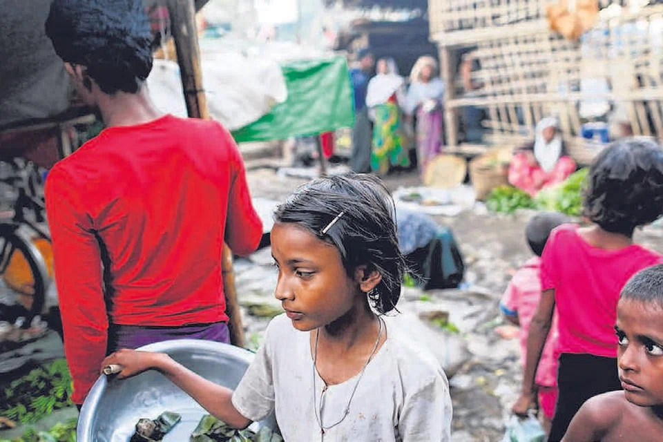 ரக்கைன் மாநிலத்தில் தங்களுடைய இருப்பிடங்களிலிருந்து வெளியேறி தற்காலிக முகாம்களில் தங்கியுள்ளவர்களுக்கு உணவு விற்கும் சிறுமி. கோப்புப் படம்: ராய்ட்டர்ஸ்