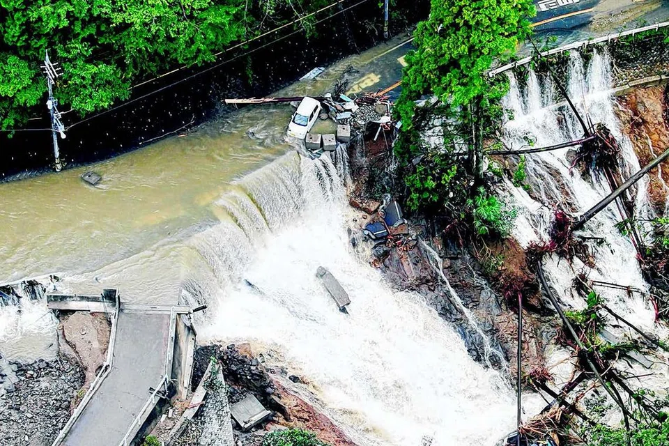 கொள்கலன் கப்பல் ஒன்று துறைமுகச் சுவரின் மீது மோத, அதிலிருந்த 19 ஊழியர்களும் அதிர்ஷ்டவசமாக உயிர் தப்பினர். தோக்கியோவில் இருந்து 200 கி.மீ. தொலைவிலுள்ள கொரியாமா நகரையொட்டிச் செல்லும் ஆற்றில் வெள்ளப் பெருக்கு ஏற்பட்டுள்ளதால் அந்நகரில் வசிக்கும் சுமார் 80,000 பேர் தங்களது வீடுகளைவிட்டு வெளியேறி பாதுகாப்பான இடங்களுக்குச் செல்லுமாறு அறிவுறுத்தப்பட்டுள்ளனர். மேற்கு ஜப்பானில் பல நூறு வீடுகள் வெள்ளத்தில் மிதப்பதாகத் தெரிவிக்கப்பட்டது. சூறாவளி காரணமாக டொயோட்டா நிறுவனம் அங்குள்ள தனது அனைத்து ஆலைகளிலும் காலை நேரப் பணியை நேற்று ரத்து செய்தது. படம்: ராய்ட்டர்ஸ்