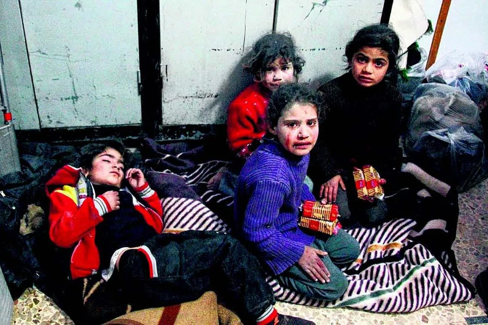 சிரியா ராணுவத் தின் வான்வழித் தாக்குதலில் காயமடைந்த குழந்தைகள் மருத்துவமனையில் சிகிச்சை பெற்றனர். இத்தாக்குதலில் 20 குழந்தைகள் பலியாகி இருக்கக் கூடும் என்று கூறப்படுகிறது. படம்: ஏஎஃப்பி