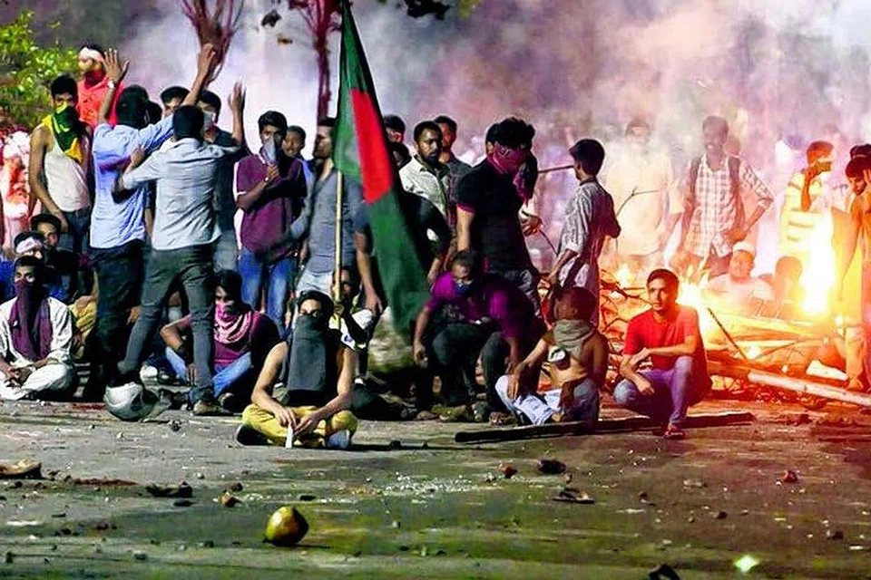 டாக்காவில் நடந்த ஆர்ப்பாட்டத்தின்போது மாணவர்களுக்கும் போலிசாருக்கும் இடையே மோதல் ஏற்பட்டது. படம்: ஏஎஃப்பி