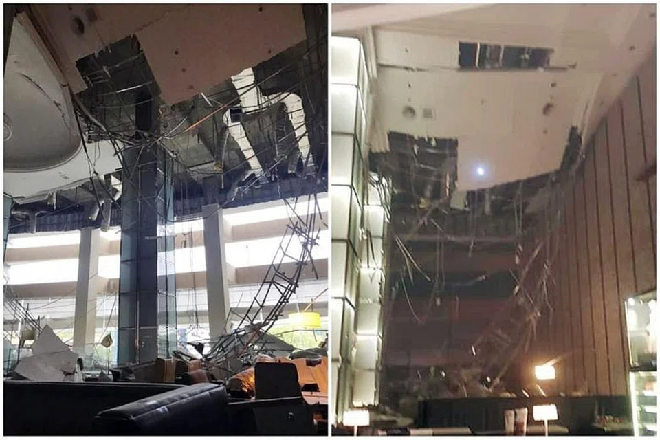 உட்கூரை இடிந்து 12 மீட்டர் உயரத்திலிருந்து கீழே விழுந்தது. படம்: கோலாலம்பூர் தீயணைப்பு, மீட்புப் பிரிவு