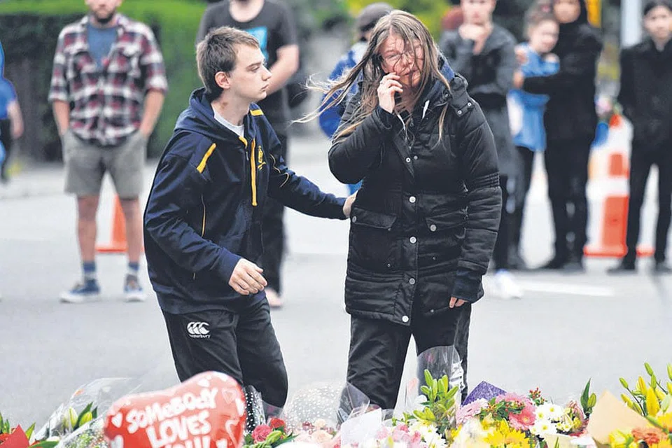 அல் நூர் பள்ளி வாசலுக்கு அருகே பொதுமக்கள் அஞ்சலி செலுத்தி வருகின்றனர். படம்: ஏஎஃப்பி -
