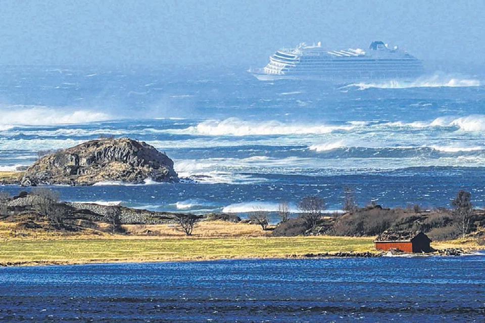 நார்வே கடலோரப் பகுதியருகே சொகுசு கப்பலிலிருந்து சில பயணிகள் ஹெலிகாப்டர் வழி மீட்கப்பட்டனர். படம்: ராய்ட்டர்ஸ் -