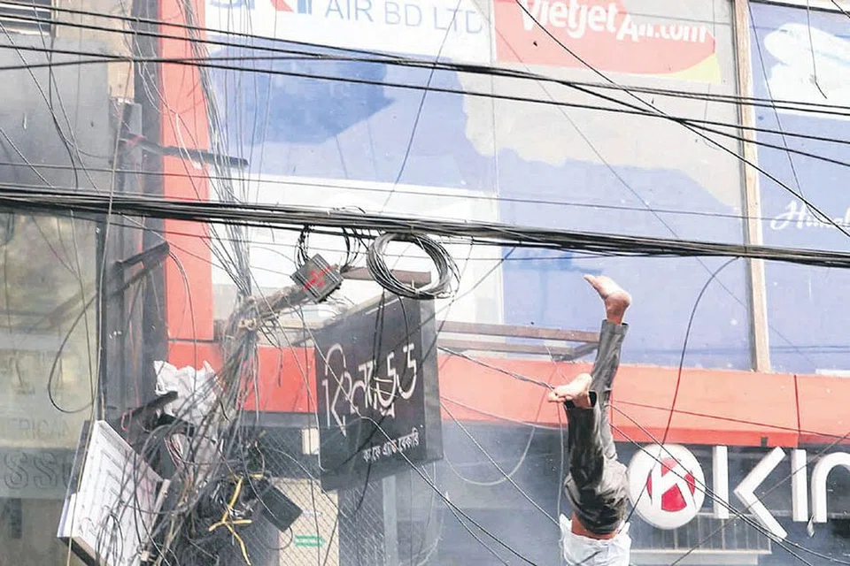 பங்ளாதேஷ் தலைநகரில் எரியும் உயர்மாடிக் கட்டடத்திலிருந்து ஒருவர் கீழே குதித்துத் தப்பிக்க முயற்சி செய்கிறார். இவர், உயிர் பிழைத்தாரா என்பது தெரியவில்லை. இவரைப்போல மேலும் ஐவர் கீழே குதித்தனர். டாக்காவில் உள்ள பனானி பகுதியில் உள்ள 'எஃப்ஆர்' எனும் கட்டடத்தில் நேற்று முன்தினம் பிற்பகலில் தீ விபத்து ஏற்பட்டது. இதில் உயிரிழந்தவர்களின் எண்ணிக்கை 19ஐத் தொட்டு உள்ளது. எழுபதுக்கும் மேற் பட்டோர் காயம் அடைந்தனர். பலர் உள்ளே சிக்கிக் கொண்டதாகவும் கூறப்பட்டது. பல மணி நேர போரட்டத்துக்குப் பிறகு தீ அணைக்கப்பட்டது.