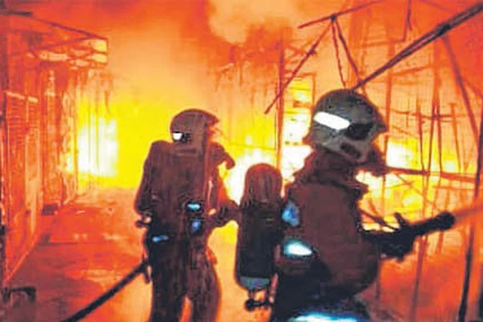 துணிமணிகள், பைகள், காலணிகள் போன்ற பொருட்களை விற்கும் கடைகள் நெருப்பில் முற் றிலும் நாசமாகின.