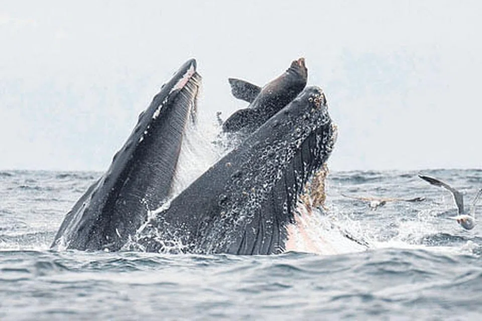 திமிங்கிலத்தின் வாயில் விழும் கடல்சிங்கம்