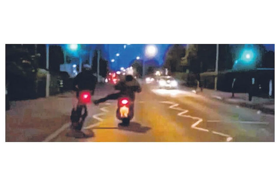 சைக்கிளில் செல்வோர் எட்டி உதைக்கப்படுவதைக் காட்டும் காணொளி இணையத்தில் வேகமாகப் பரவி வருகிறது. படம்: இணையம் -