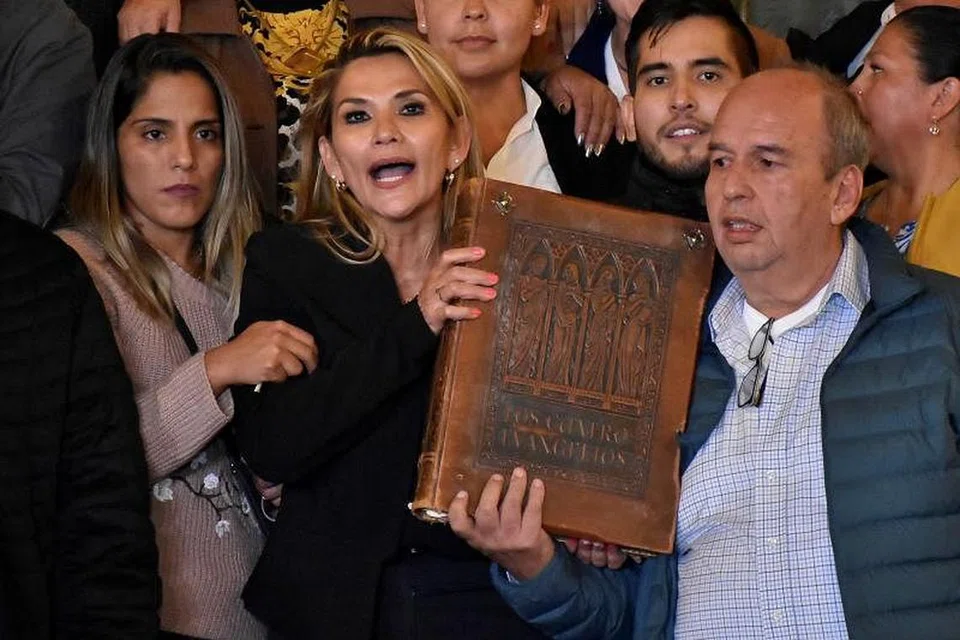 பொலிவியாவின் எதிர்க்கட்சி செனட்டர் ஜெனின் ஆஞ்யெஸ், தன்னை அந்நாட்டின் இடைக்கால அதிபராக பிரகடனப்படுத்திக்கொண்டார். முன்னாள் அதிபர் இவோ மொராலெஸ் பதவியிலிருந்து விலகியதை அடுத்து திருவாட்டி ஆஞ்யெஸின் இந்த அறிவிப்பு இன்று வெளிவந்தது.