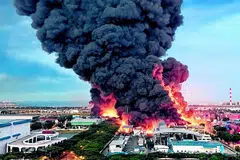 கறுப்பு நிறப் புகை மற்றும் தீப்பிழம்புகள் விண்ணை நோக்கி உயர்ந்ததால், அருகிலுள்ள தொழிற்சாலைகளில் உள்ள தொழிலாளர்கள் வெளியேற்றப்பட்டதாகக் குறிப்பிட்ட அதிகாரிகள், தீயை அணைக்க பெரும்பாடுபட்டதாகத் தெரிவித்தனர்.
