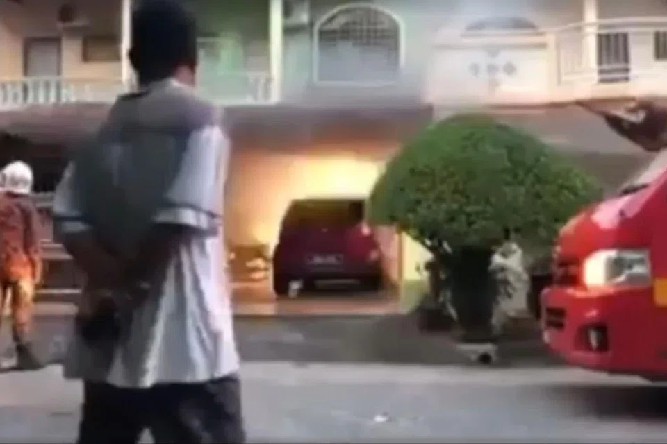 சுமார் 14 வினாடிகளுக்கு நீடிக்கும் அந்தக் காணொளியில் பலத்த வெடிச் சத்தங்களையும் தீப்பிளம்புகளையும் காண முடிந்தது. வீட்டுக்கு முன்பாக புகைமண்டலம் காணப்பட்டது.
