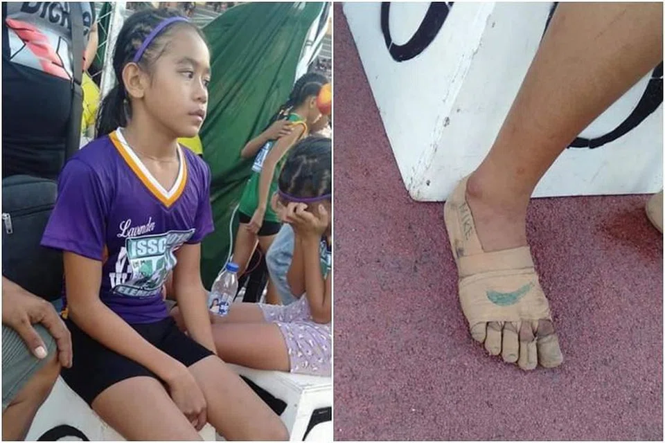 பிரபல நிறுவனங்களின் காலணிகள் இல்லை; நாடாவைக் காலில் 'ஷூ' போல சுற்றி அதனையே காலணியாக்கி ஓடி மூன்று தங்கப் பதக்கங்களை வென்று சாதித்துள்ளார் 11 வயதான ரீ புல்லோஸ் எனும் பிலிப்பீன்ஸ் நாட்டு மாணவி.
