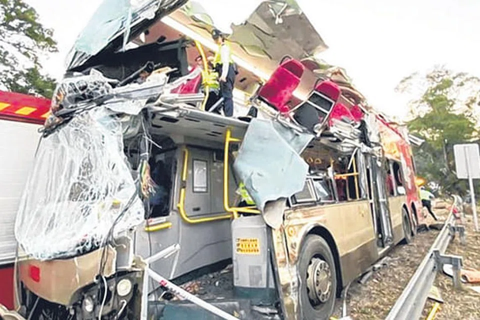 அந்தப் பகுதியில் தற்காலிக சடலக்கூடம் ஒன்று ஏற்படுத்தப்பட்டது. வேகமாக மோதியதன் விளைவாக பேருந்து உருக்குலைந்தது. விபத்து குறித்து போலிசார் விசாரித்து வருகின்றனர்.