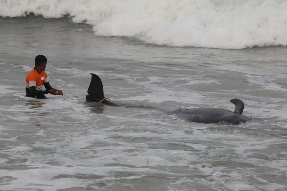 கொழும்பிலிருந்து சுமார் 25 கிமீ. தெற்கில் உள்ள பனடூரா பகுதியில் குட்டை துடுப்புகளைக் கொண்ட சுமார் 120 'முன்னோடித் திமிங்கிலங்கள்' திங்கட்கிழமை இரவு கரையொதுங்கின.