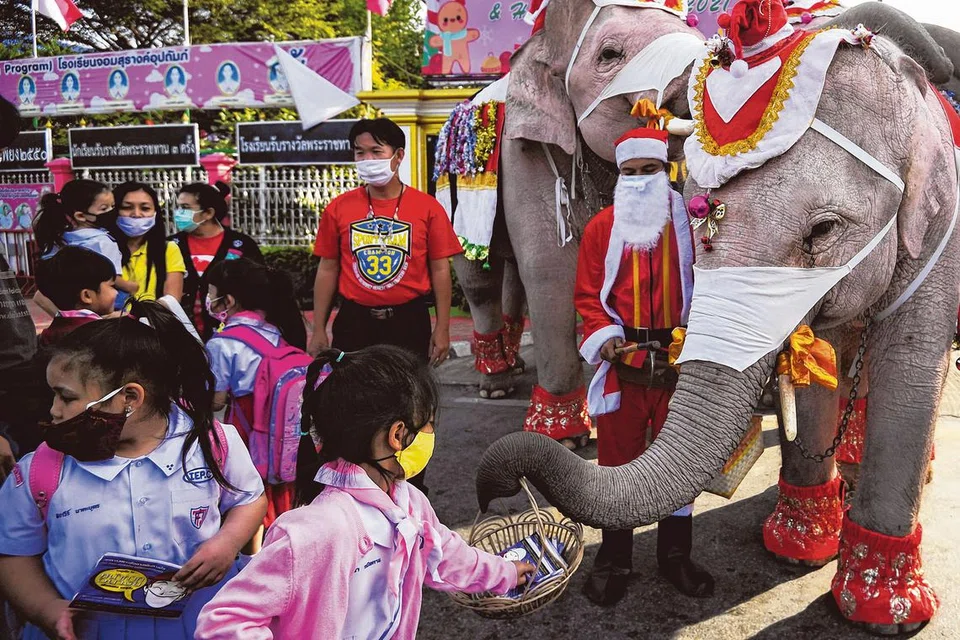 கிறிஸ்துமஸ் விழாக்காலத்தையும் மக்களுக்கு யானைகள் மீதுள்ள ஆர்வத்தையும் இணைத்து கொரோனா கிருமிப் பரவல் தடுப்பு குறித்த விழிப்புணர்வை மக்களிடம், குறிப்பாக சிறார்களிடம் ஏற்படுத்தும் முயற்சியில் தாய்லாந்து இறங்கியுள்ளது.