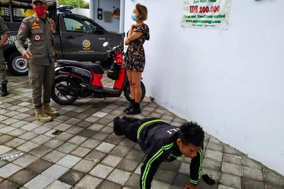 அவ்வாறு முகக்கவசம் அணியாமல் சுற்றிக்கொண்டிருந்த சுமார் 70 பேர் 100,000 ரூபியா ($9.45) அபராதம் கட்டினர். ஆனால், வேறு 30 பேர் தங்களிடம் பணம் இல்லை என்று கூறியதால் அவர்கள் 'புஷ் - அப்' உடற்பயிற்சி செய்ய பணிக்கப்பட்டது.